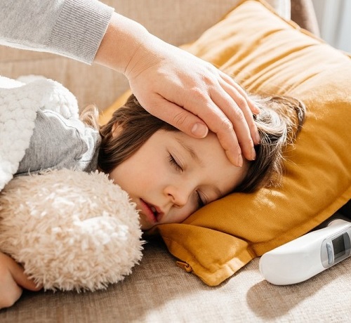 اگر دمای بدن کودک بیشتر از ۳۹.۵ درجه سانتیگراد باشد، باید با پزشک مشورت شود، مخصوصاً اگر تب بیش از ۳ روز ادامه یابد.
